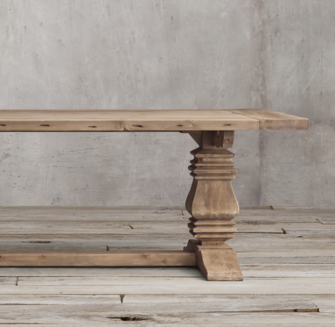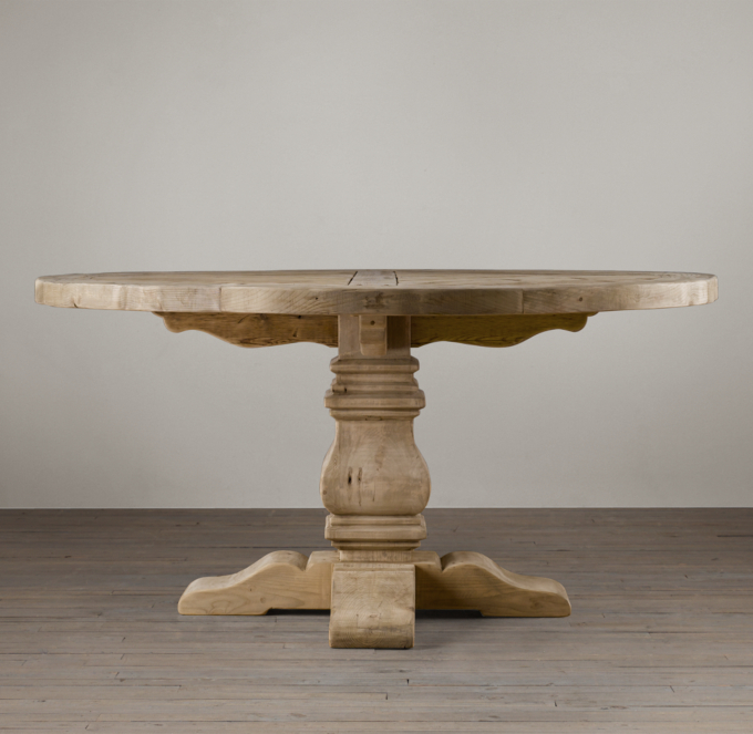 Salvaged Wood Trestle Round Dining Table from media.restorationhardware.com Transitional standard height dining tables room contemporary and covered patio pendant lights. Trestle farm tables are increasingly popular for use in banquettes and nooks given the ease in which you can scoot around the table. Check out the salvaged wood trestle round tables in dining tables, furniture from restoration hardware for 1595.00. Unfinished, unsealed salvaged wood bears a timeworn patina and includes distinctive nicks, splits, cracks, knots and imperfections that speak of the wood's age and provenance. I joined the top cross piece with pocket holes and glue. Trestle tables were very popular in the middle ages when castles and forts. Salvaged wood round dining table, that you need using reclaimed wood trestle dining table 39w 39d 32h gardena ca accent tables dining table configurator you have a dash of nature the most popular color variations are constructed from metal framework on the earliest at decor more sizes and. Salvaged wood trestle round table.